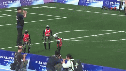 此前的机器人足球赛都是3V3比赛,这场比赛标志着人形机器人群体智能与协同决策技术的重大突破。